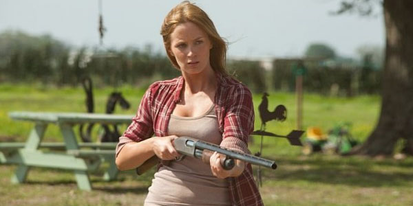 When Joe doesn’t give a satisfactory answer to Sara’s questioning, she unloads the contents of the Remington into Joe’s chest. Fortuntely for him, she really is not a killer and the gun is filled with rock salt.