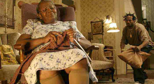 The Ladykillers is not another No Country for Old Men. You have to look at Moss and Chigurgh very closely to decide which one wants what he wants more. The blurred lines in this picture come from the fact that Mrs. Munson isn’t easy to root for. No one would ever accuse Dorr of being likeable—he’s kind of a pompous ass. But, compared to Mrs. Munson, he’s a treat.